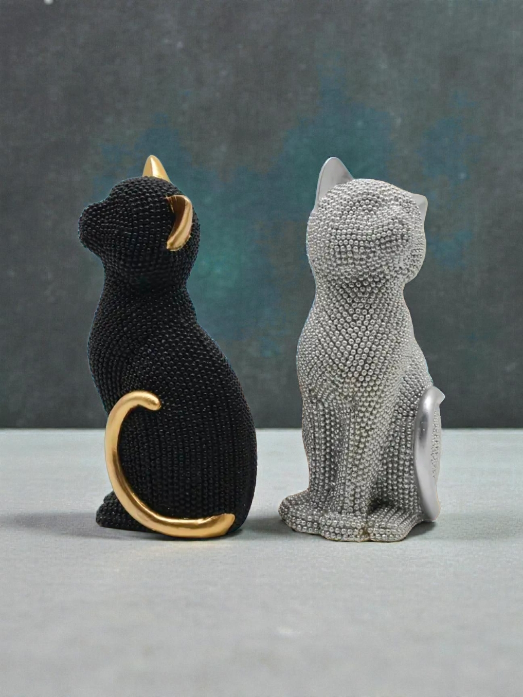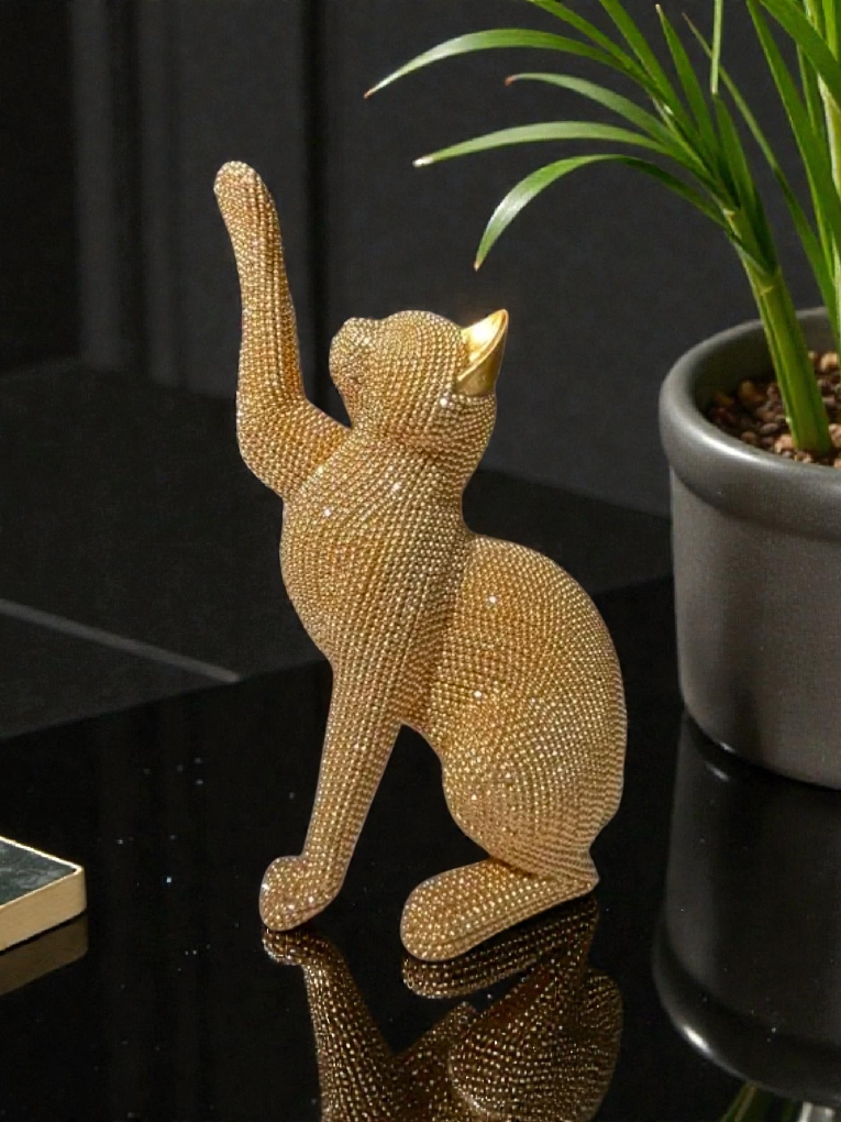 Sitting Cat (Gold, Silver, and Black)