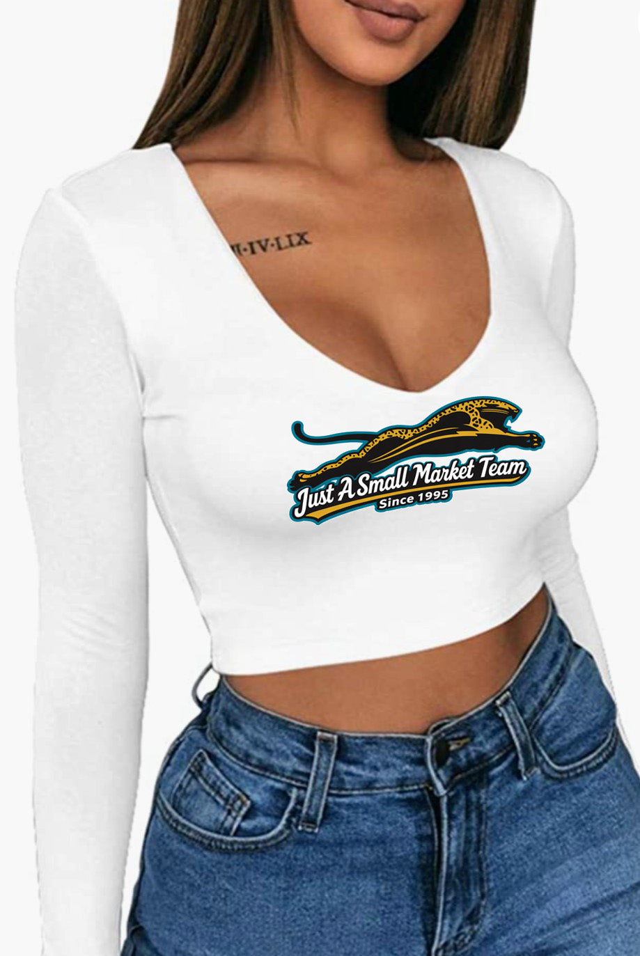Jaguars Just a Small Market Team V-Neck Bodysuit